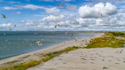 這是2019年8月28日拍攝的呼倫湖畔的水鳥(無人機(jī)照片)。新華社記者 沈伯韓 攝