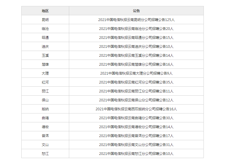 用人單位(州市分公司) 中國電信昆明分公司及省公司本部 工作地點(具體到縣分公司) 昆明5人,祿勸1人