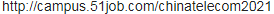 )和中國電信校園招聘微信公眾號(搜索“中國電信校園招聘”或“中國電信校招速遞”),瀏覽最新的校招信息。