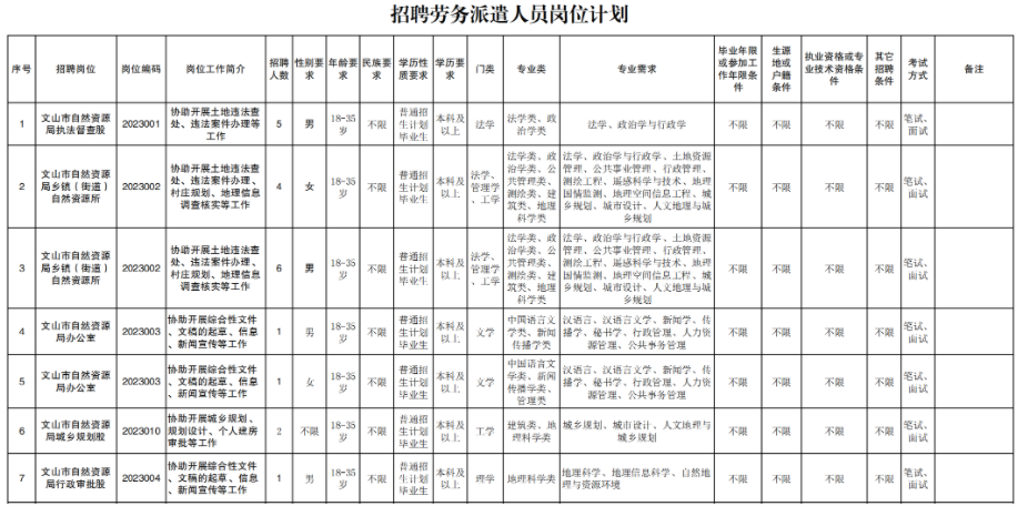 公開招聘人員20名。具體崗位、人數(shù)、資格條件等詳見《文山州財信人力資源有限公司公開招聘勞務(wù)派遣人員崗位計劃》(以下簡稱《崗位計劃》),報考人員可通過“文山人才網(wǎng)”微信公眾號、文山人才網(wǎng)、“文山市城鄉(xiāng)投”公眾號查看招聘信息。