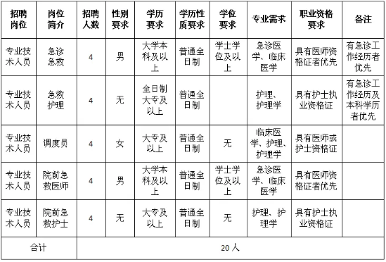 具有教育行政主管部門認(rèn)可學(xué)歷、取得相關(guān)資質(zhì)證書,并符合急診崗位要求和相關(guān)資格條件的人員。